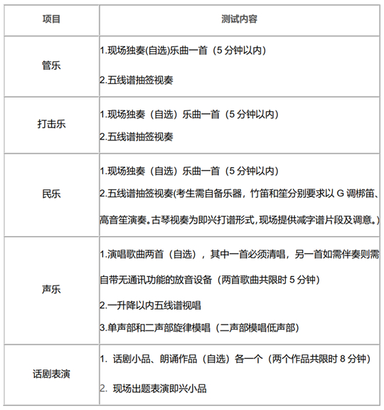 文化课测试:考试科目为语文、数学、英语。具体考试安排及要求详见文化课测试准考证(在报名系统下载打印)。