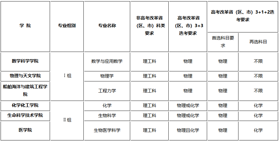 所有按要求完成报名的考生可参加我校组织的笔试(高考后一周内),具体时间安排详见准考证。报考Ⅰ组的测试科目为“数学、物理”,报考Ⅱ组的测试科目为“数学、化学”。我校将根据笔试成绩,按照不超过各省(区、市)各专业组别招生计划6倍的比例,分别确定各省(区、市)各专业组别笔试通过考生名单,末位同分考生均予以入围。未通过笔试的考生不参与后续环节及录取成绩排序。